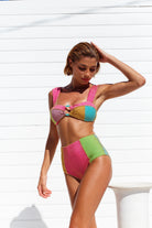 Tecido texturizado em lurex em cores que você vai se apaixonar em modelos para cada momento que você merece brilhar: do básico para curtir o sol até as peças mais estilosas e elaboradas. Toda uma coleção elétrica e divertida, como a Ripple, BB sempre traz pra você!