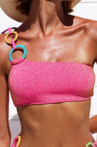 Top Um Ombro Só Argolas Pink Glow - Coleção Back To Shine