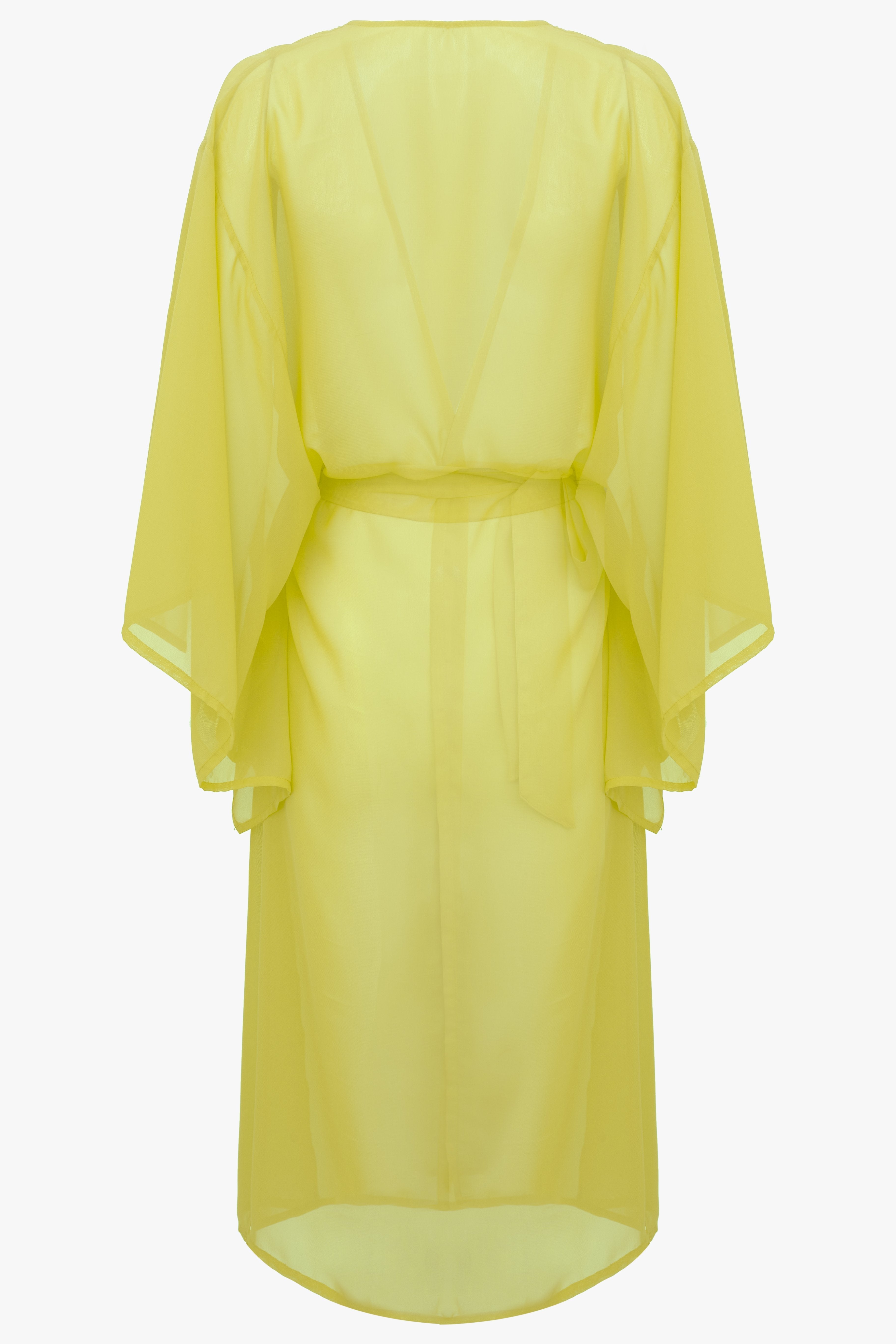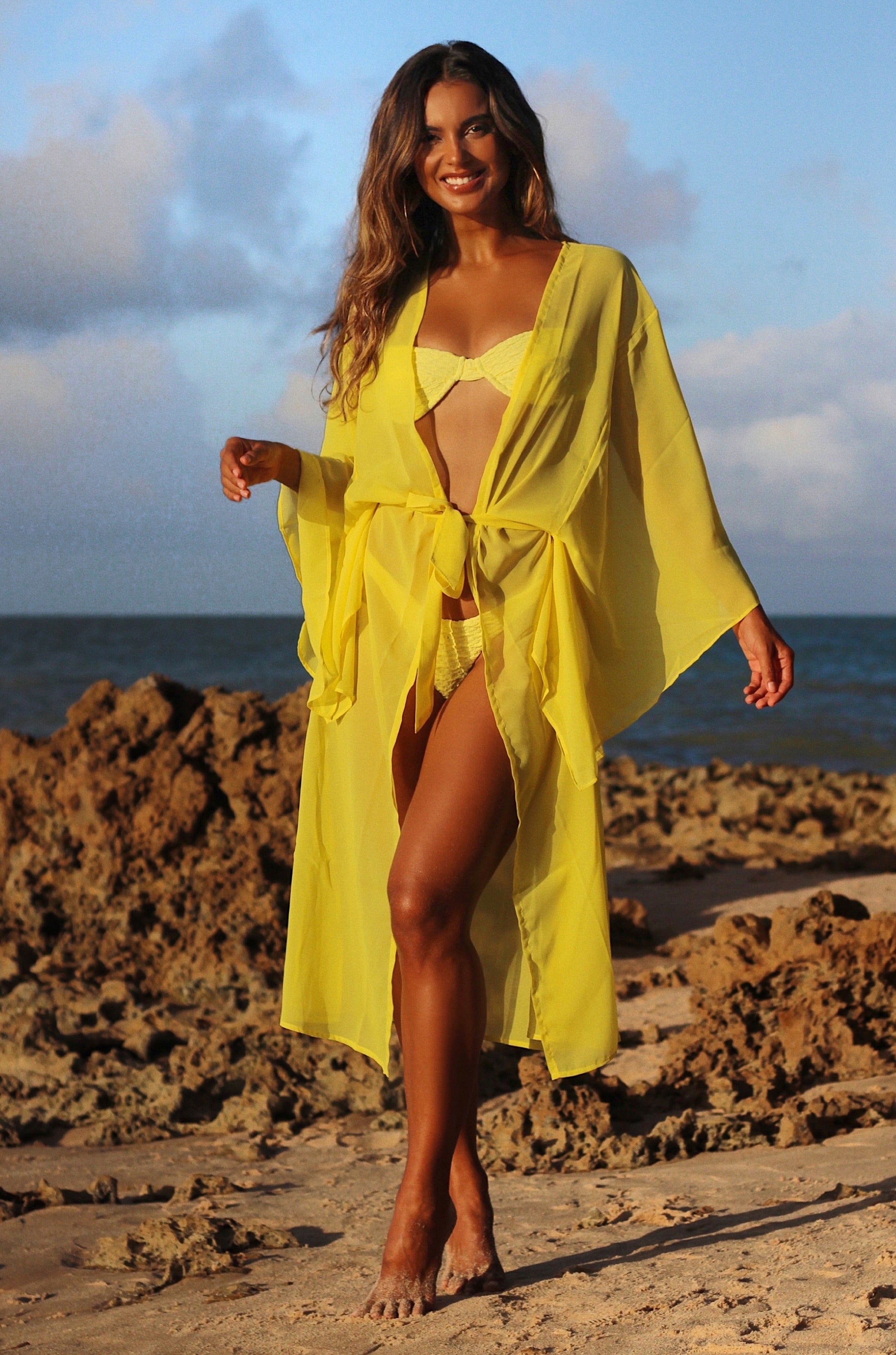 Modelo: Saída Kaftan de Chiffon, comprimento midi. Acompanha faixa do mesmo tecido para amarração na cintura.