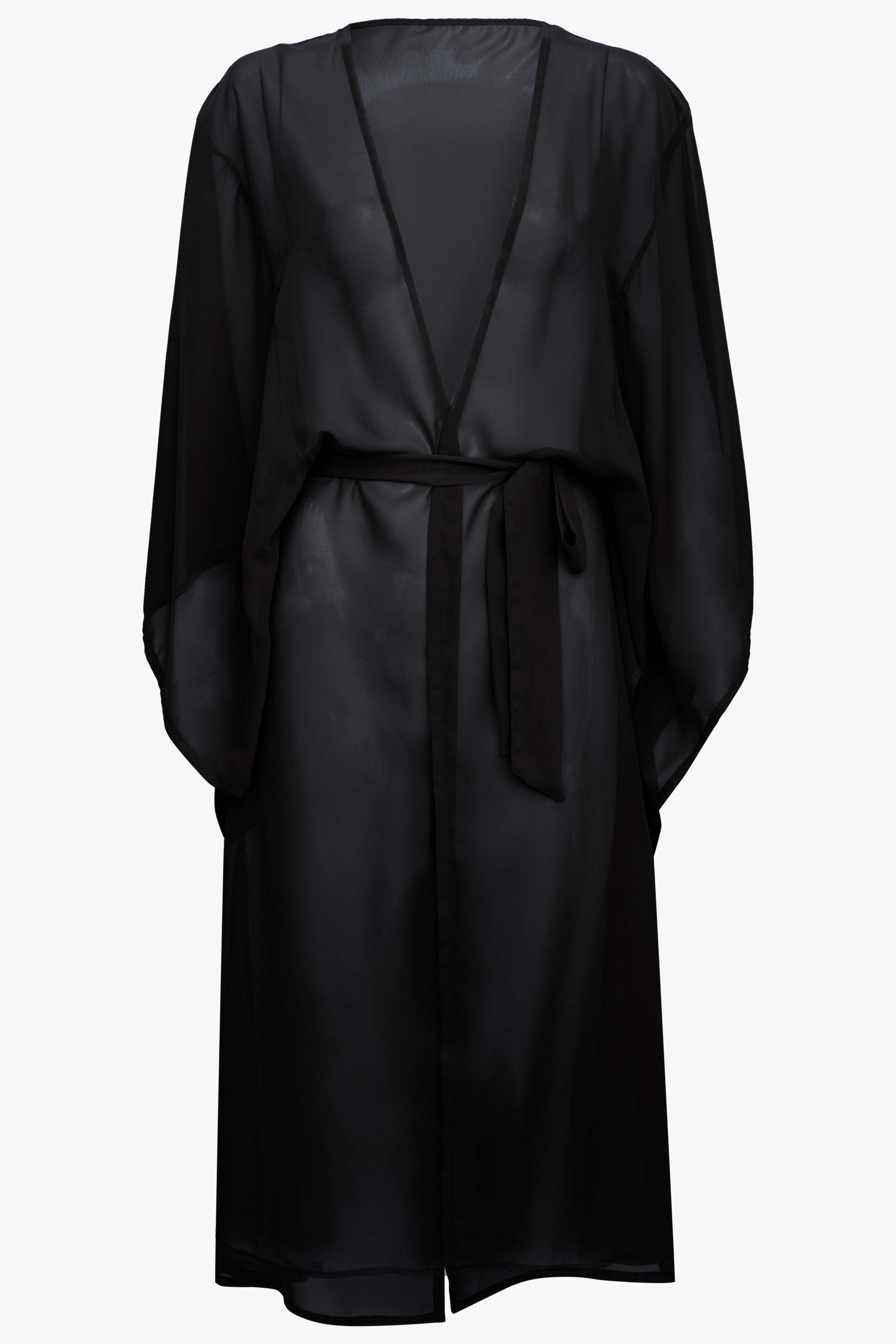 Modelo: Saída Kaftan de Chiffon, comprimento midi. Acompanha faixa do mesmo tecido para amarração na cintura.