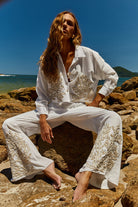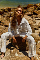 Pré-Venda! Calça Off White com bordado Bege