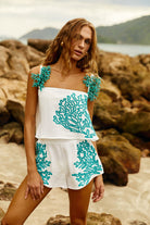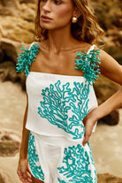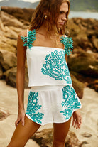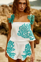 Pré-Venda! Shorts Off White com bordado Turquesa