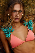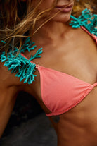 • Alças com aplicação de corais exclusivos, totalmente removíveis. Pode ser usado com os corais para um visual mais sofisticado ou sem eles para uma proposta mais minimalista.