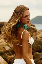 Top Meia Taça Off White - com alça Turquesa