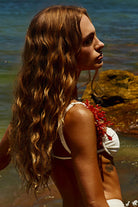 Top Meia Taça Off White - com alça Vermelho Clásico