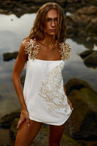 Pré-Venda! Vestido Curto Off White com bordado Bege