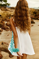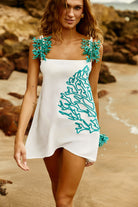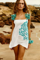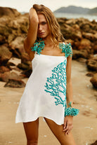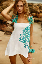 Pré-Venda! Vestido Curto Off White com bordado Turquesa