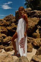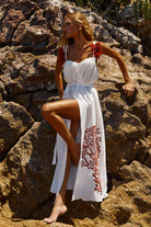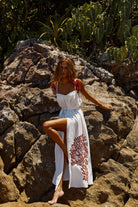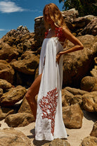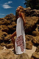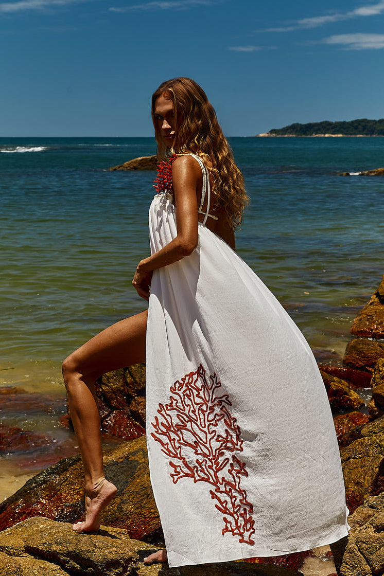 Pré-Venda! Vestido Longo Off White com bordado Vermelho Clássico