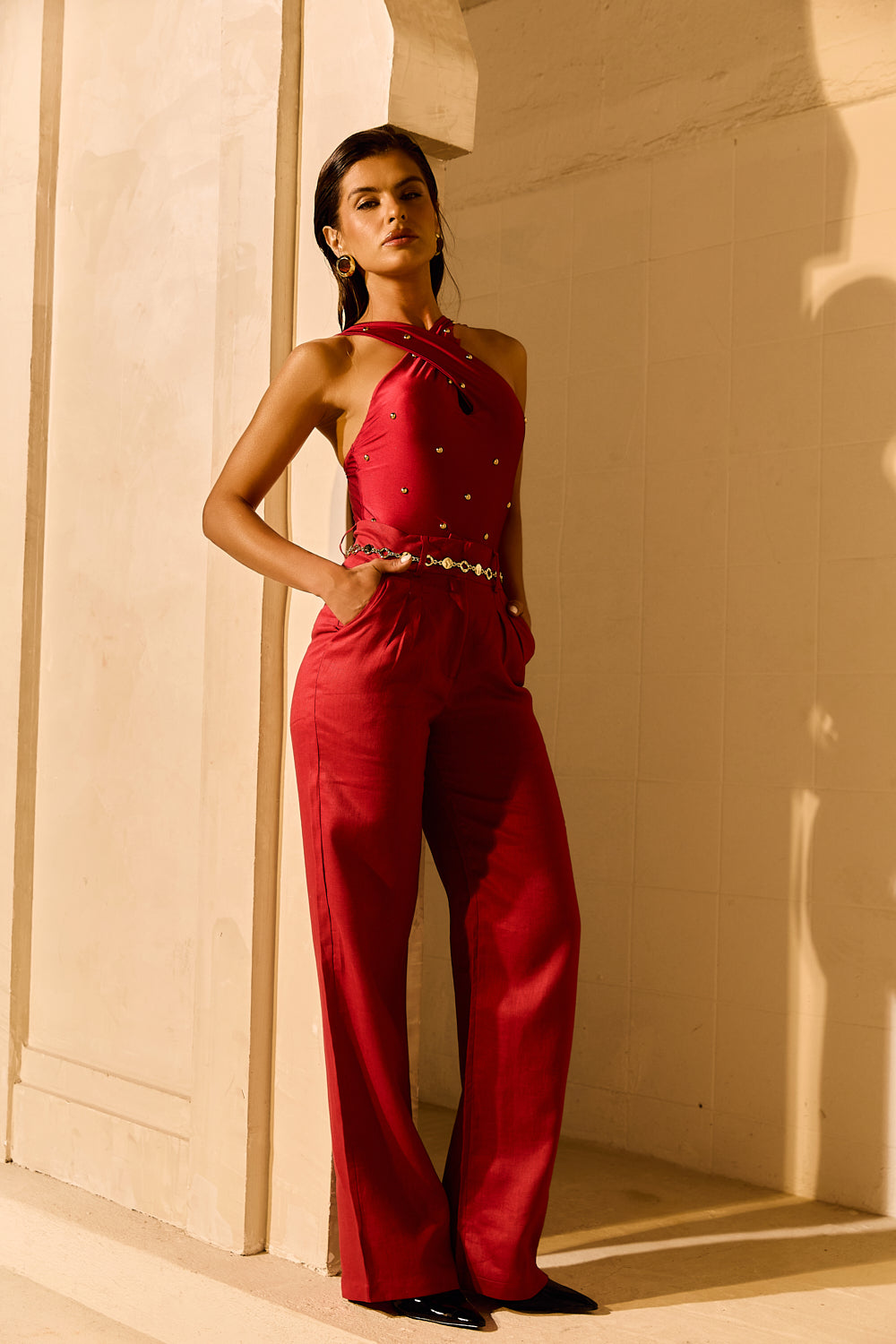 Calça Alfaiataria de Linho Golden & Glow Cereja
