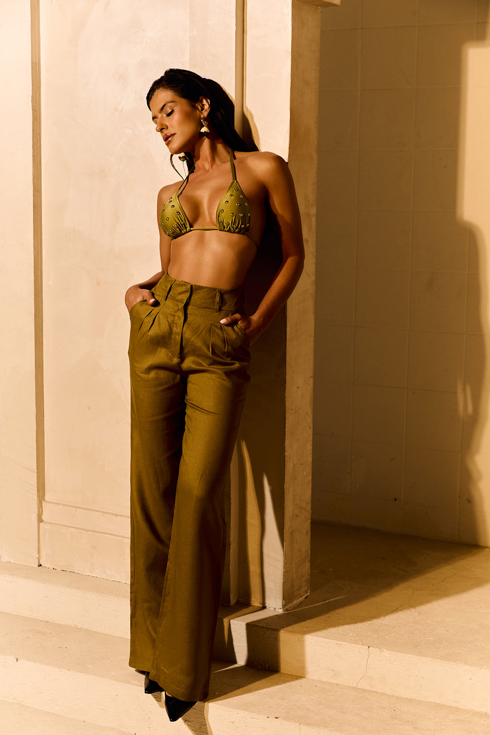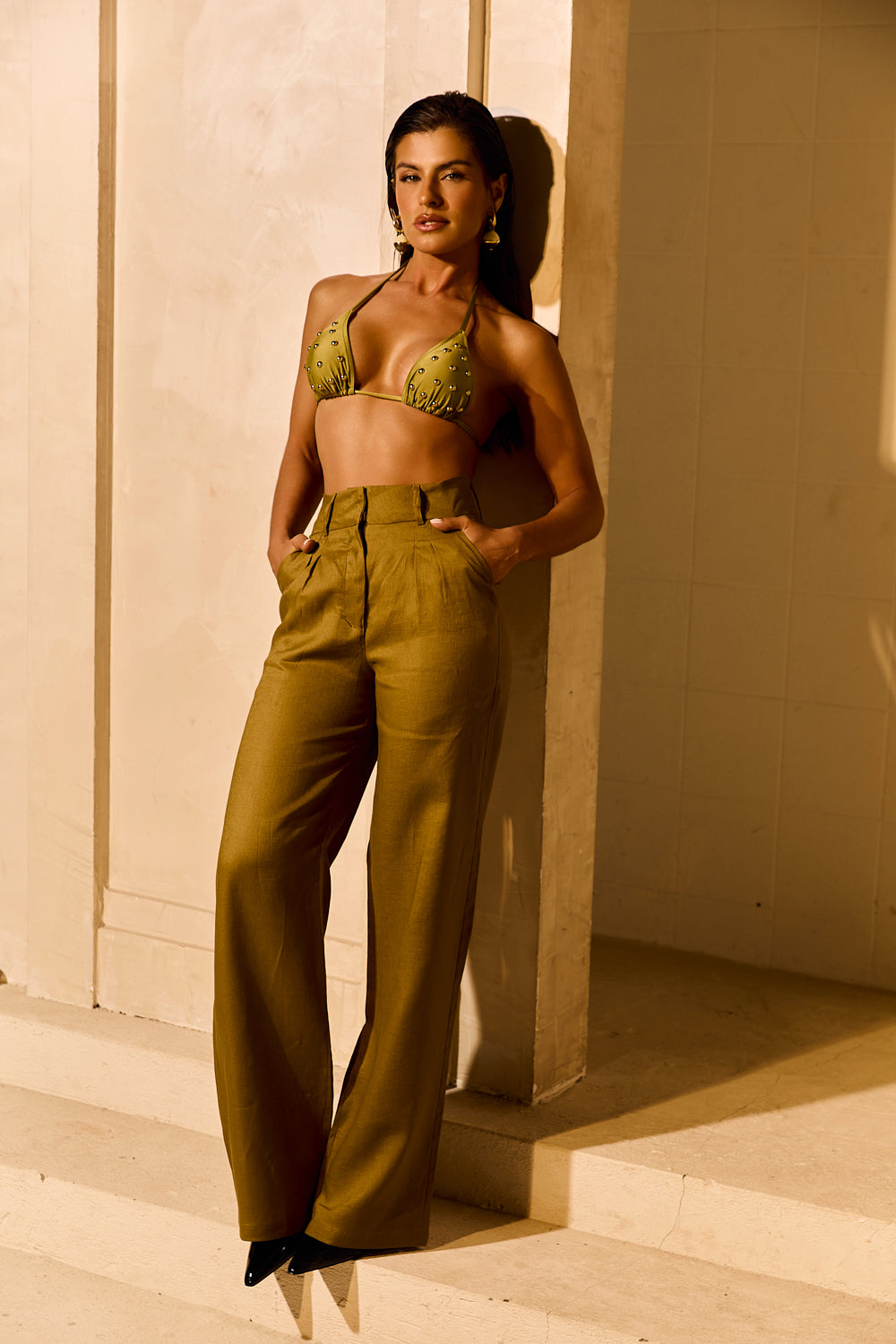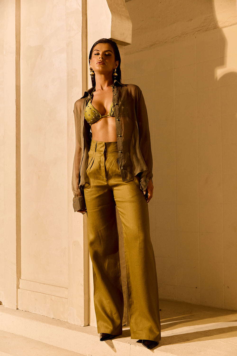 Calça Alfaiataria de Linho Golden & Glow Pistache