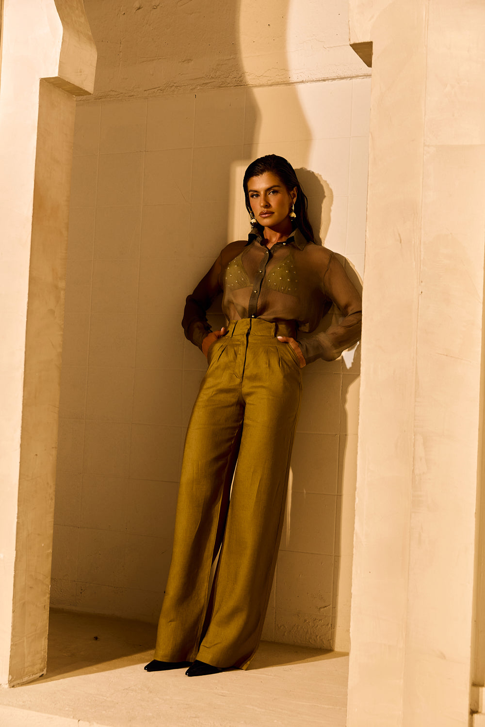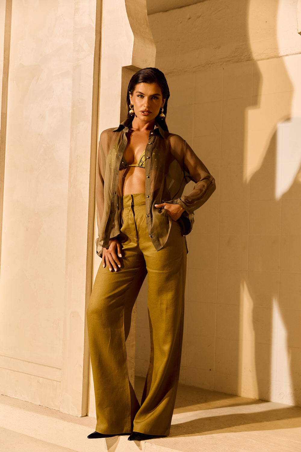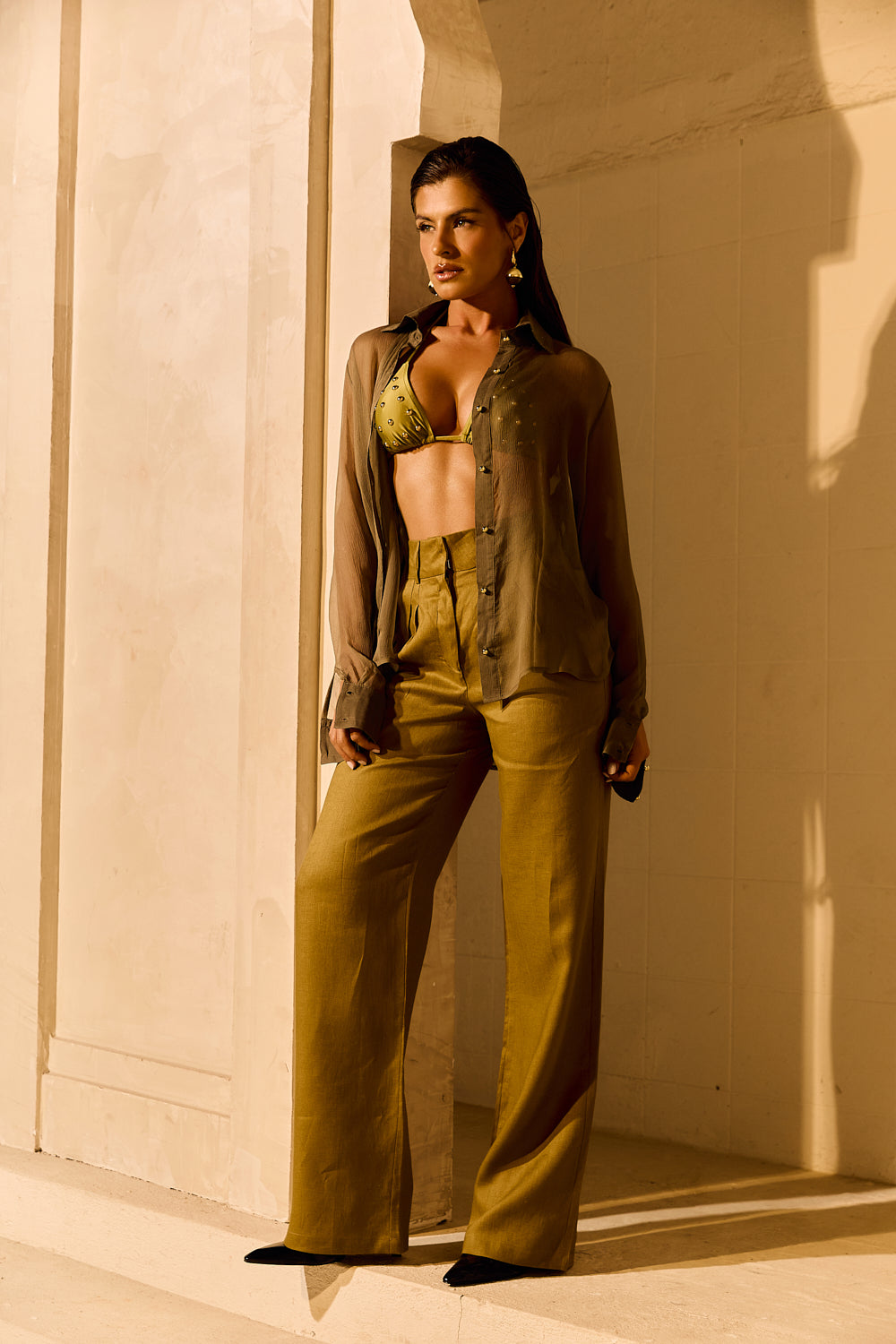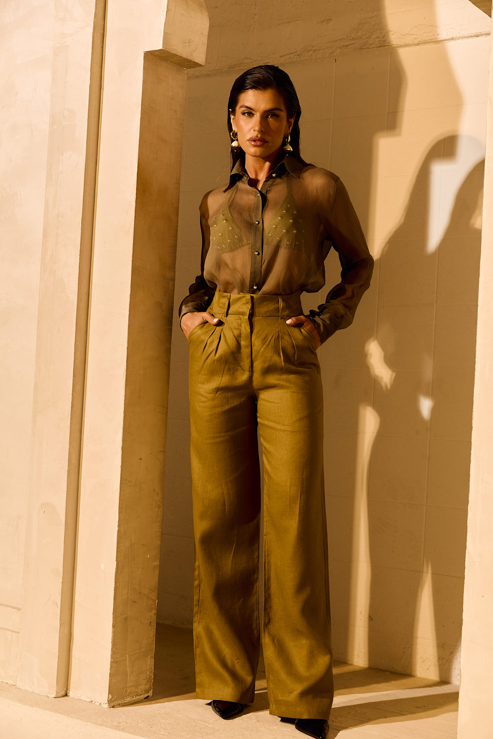 Calça Alfaiataria de Linho Golden & Glow Pistache