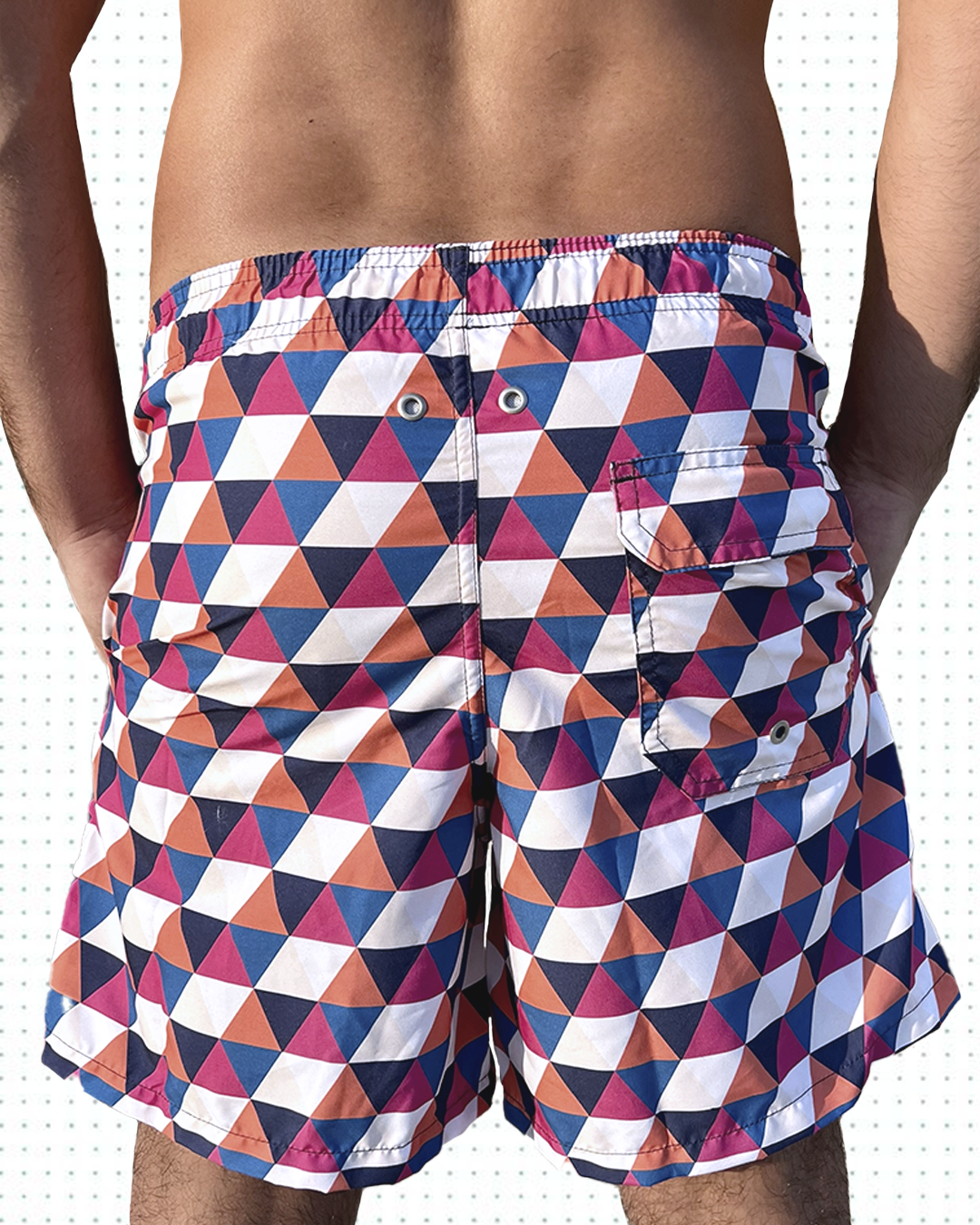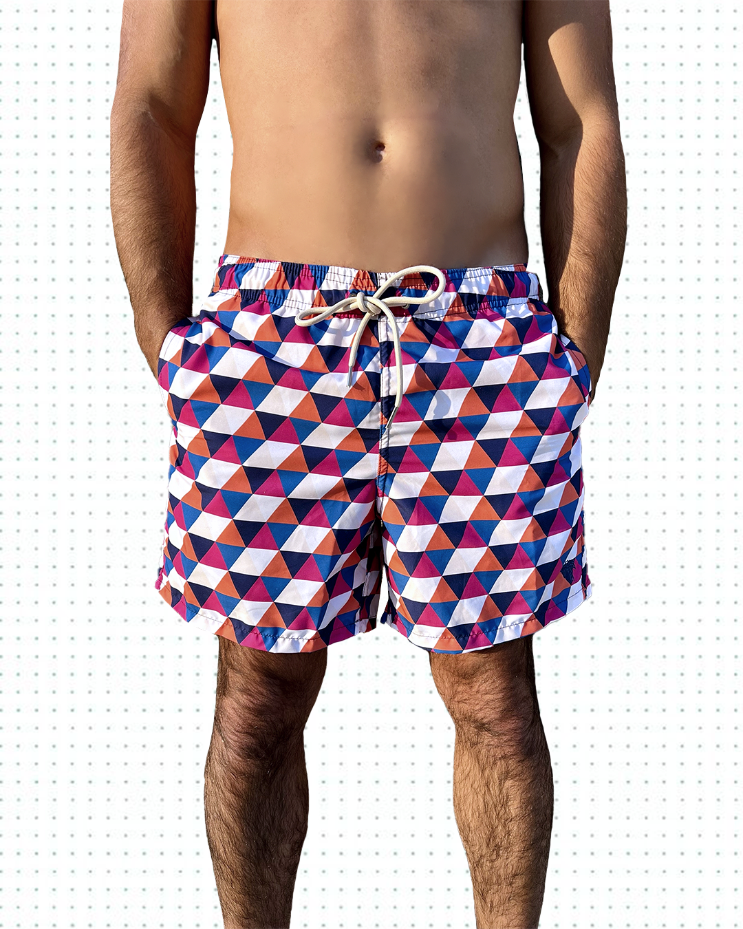 Modelo: Shorts masculino adulto com estampa exclusiva, com bolsos laterais e traseiro, cordão pra regulagem de cintura com ponteira de metal, cueca interna em poliamida.