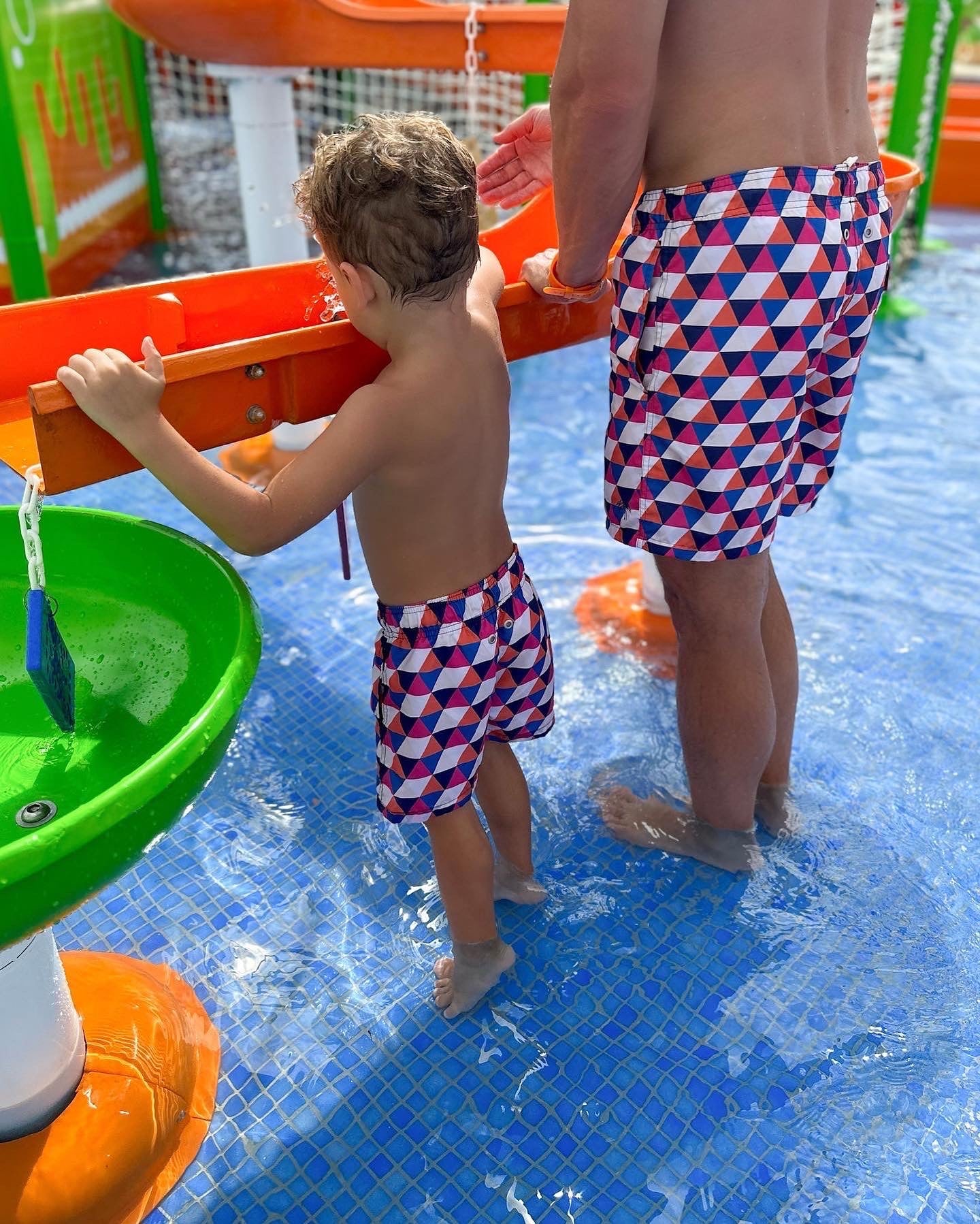 Modelo: Shorts masculino infantil com estampa exclusiva, com bolsos laterais e traseiro, cordão pra regulagem de cintura com ponteira de metal, cueca interna em poliamida.