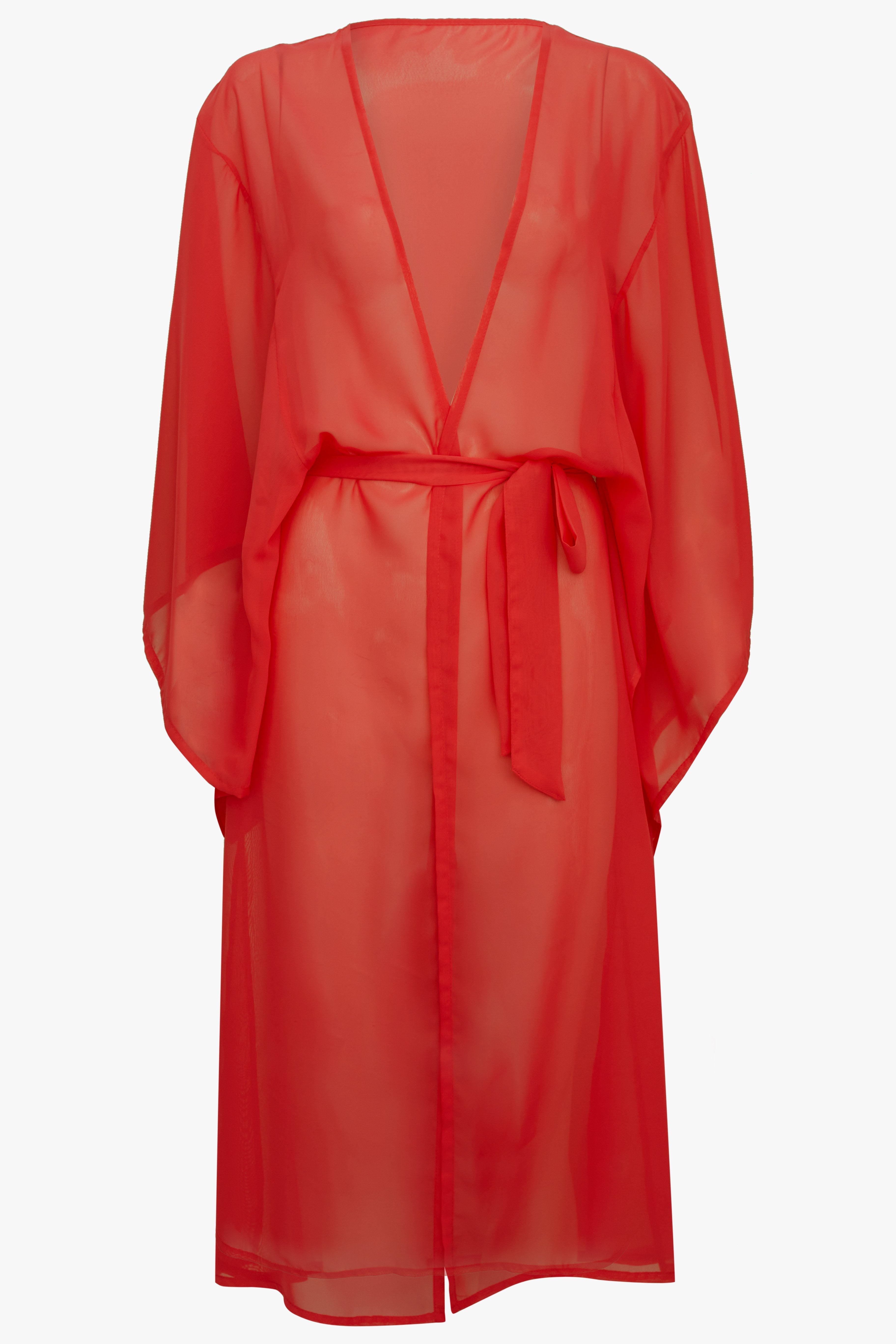Modelo: Saída Kaftan de Chiffon, comprimento midi. Acompanha faixa do mesmo tecido para amarração na cintura.