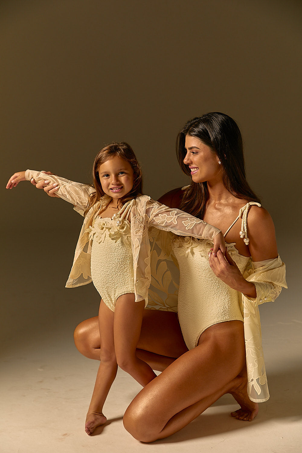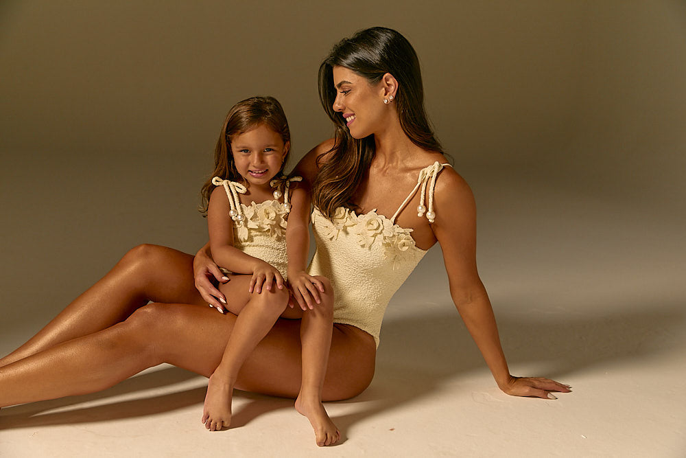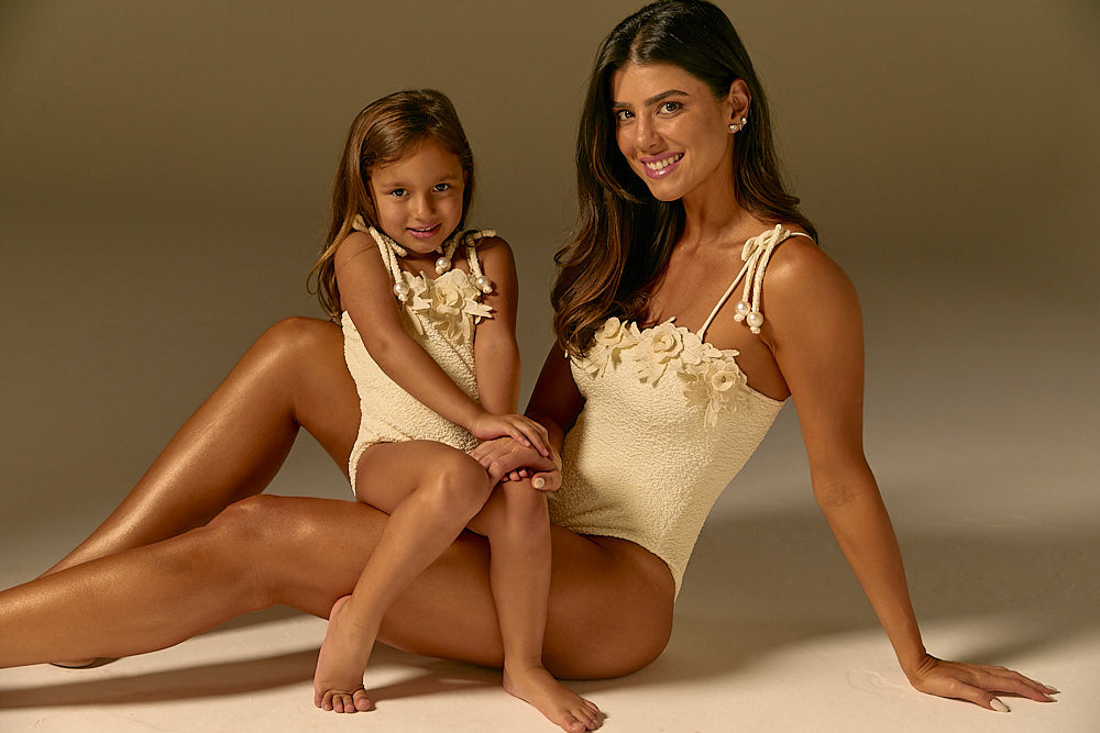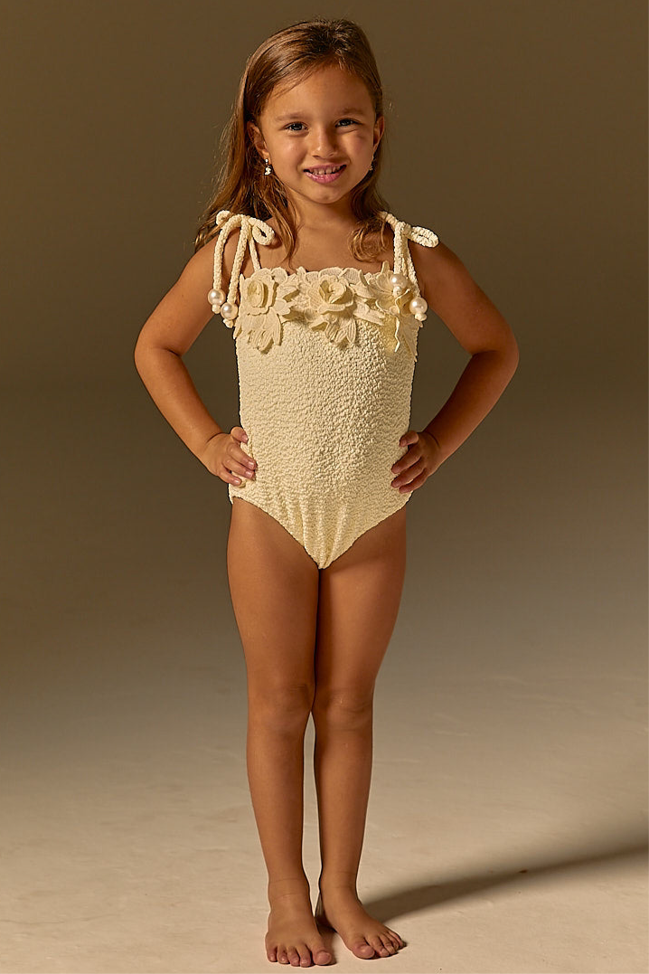 Maiô Infantil Floral Pérola